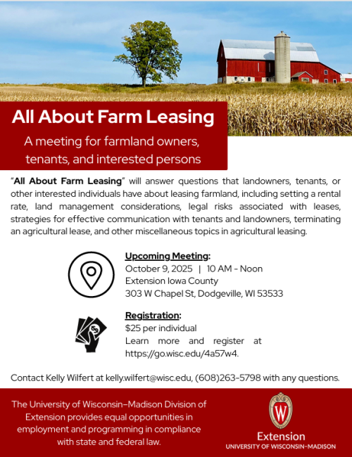 Join UW–Madison Extension this October for Ag Leasing seminars across Wisconsin! Each seminar covers: